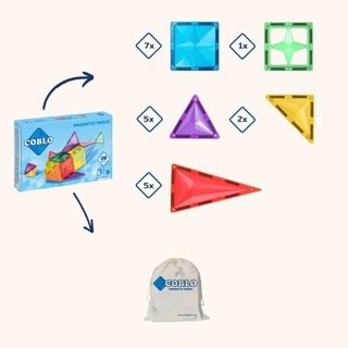 Deze 20 stuks verpakking bevat 20 magnetische bouwblokken in verschillende vormen en kleuren, die kinderen, door de magneetjes in de stenen, makkelijk aan elkaar klikken. Ze hebben geen hulp nodig, wat goed is voor het zelfvertrouwen.