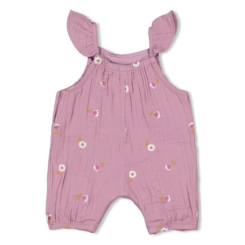 Schattig mousseline playsuitje met een bloemen borduring van Feetje.