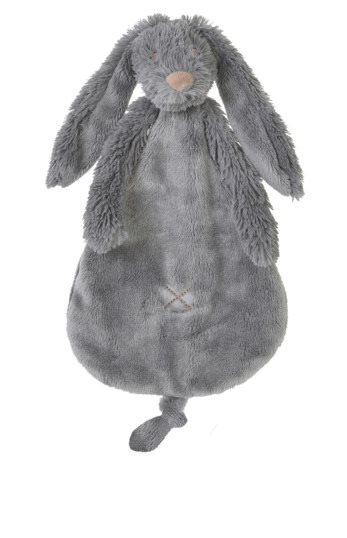 Het donkergrijze knuffeldoekje van Happy Horse populairste konijn Rabbit Richie is niet alleen super zacht, maar houdt ook nog eens makkelijk vast aan zijn oren of armen. Hij biedt troost, geeft rust en is voor vele kinderen al een onmisbaar vriendje!