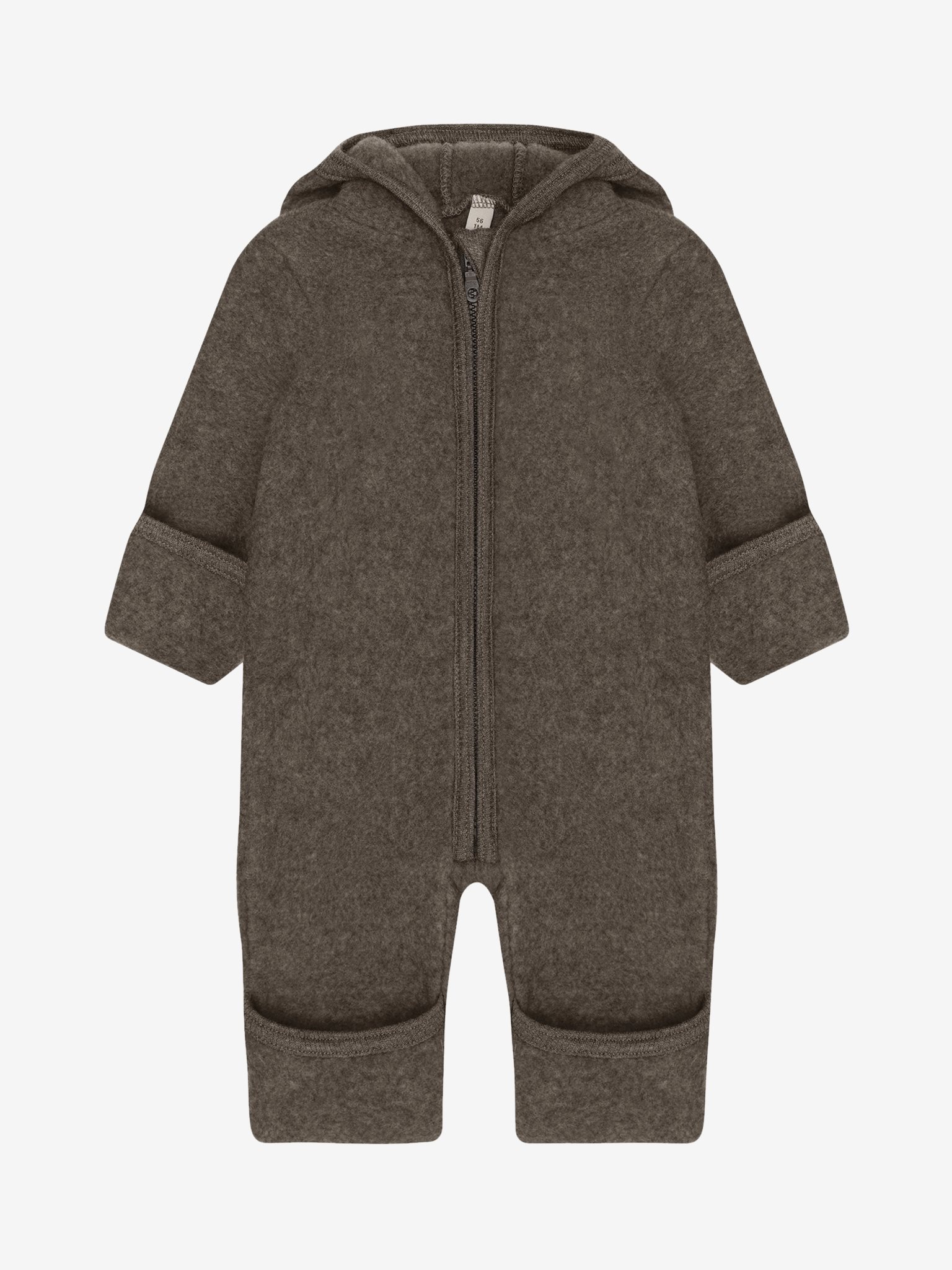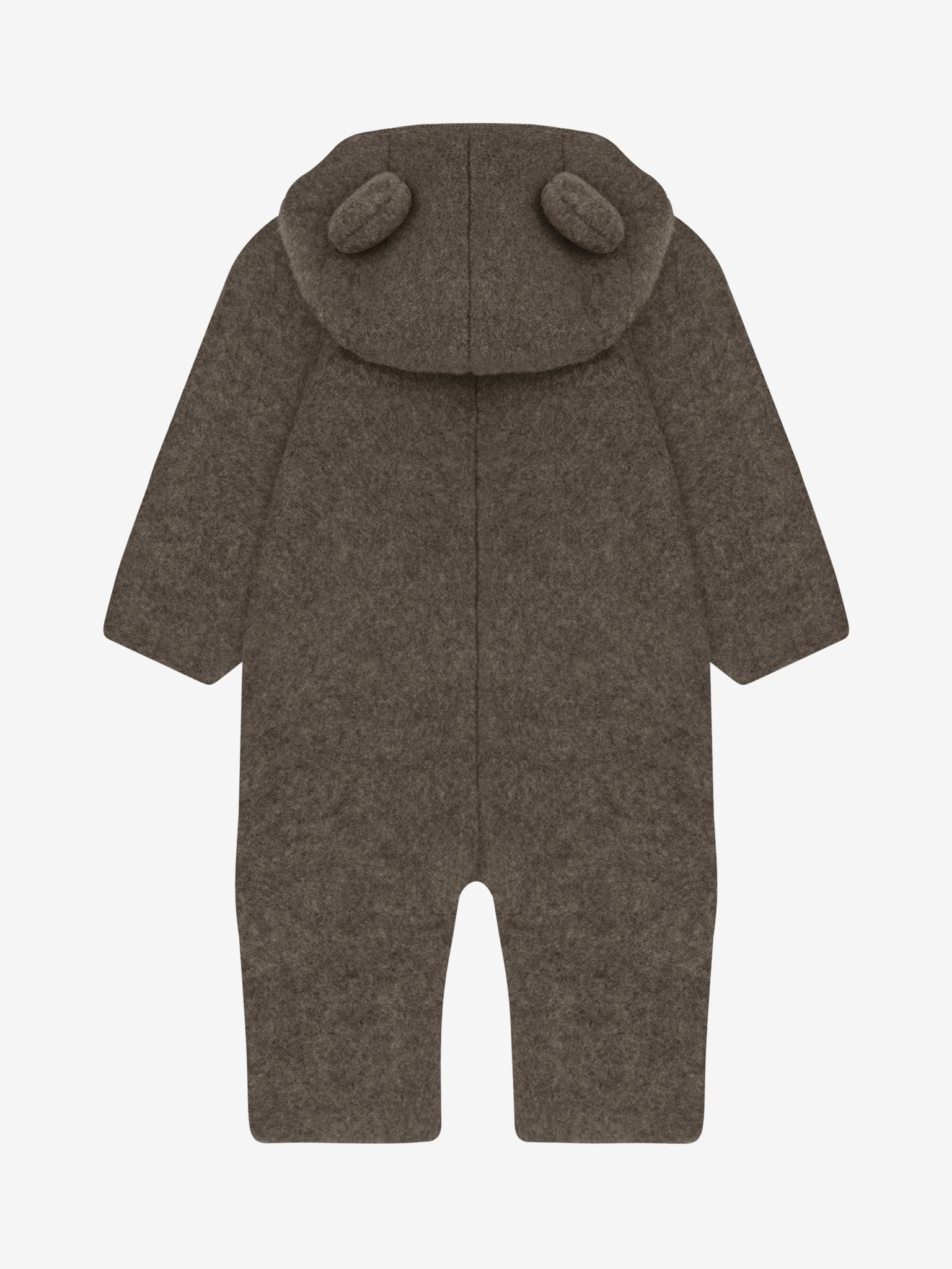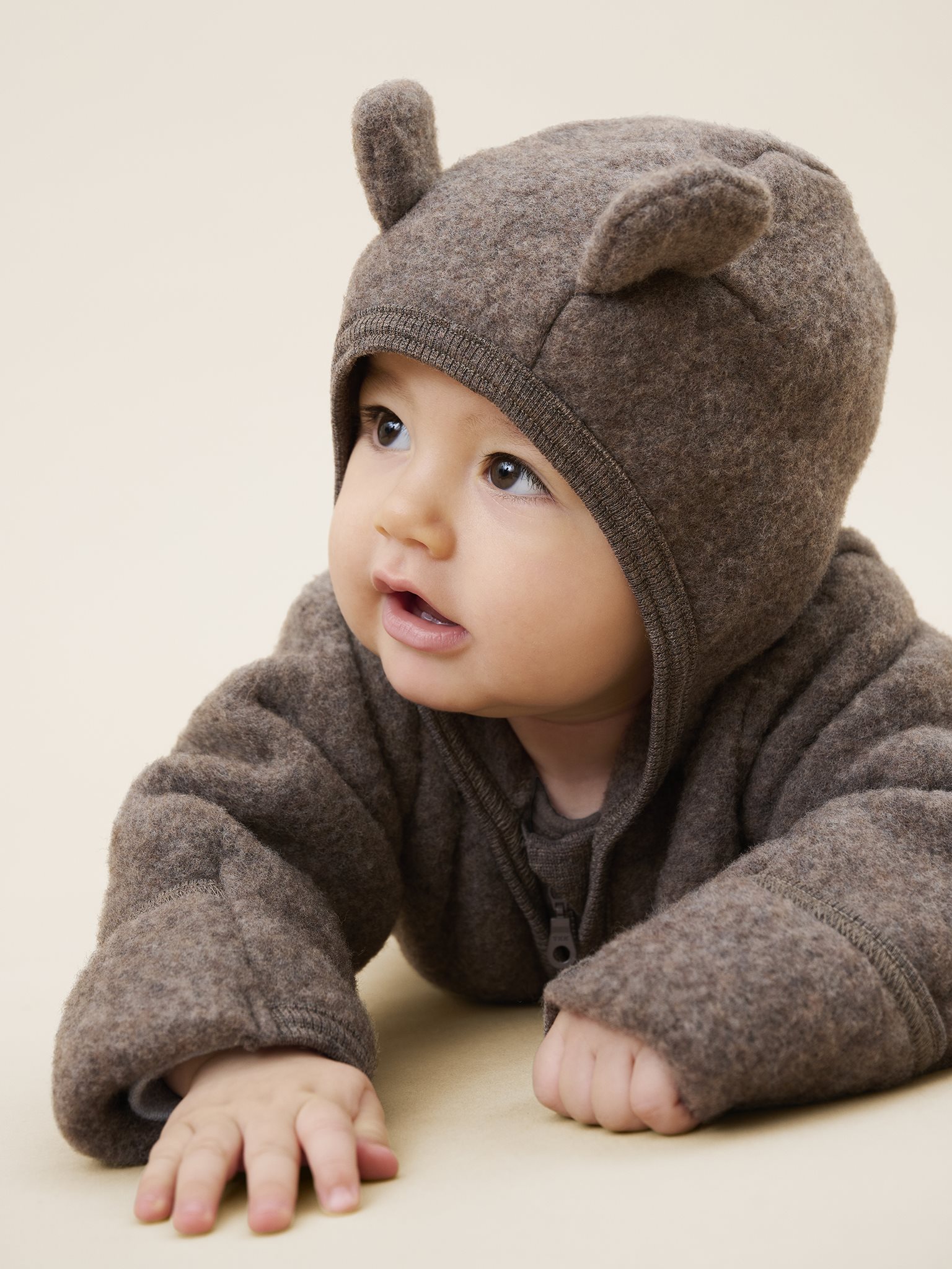 Het heeft een vaste capuchon en schattige oortjes bovenop. Zowel bij de handjes als de voetjes kan het omgevouwen worden, waardoor de handjes en voetjes lekker warm blijven.