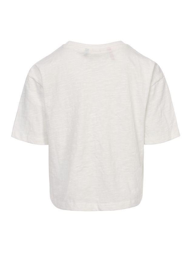 Offwhite kleur met een te gek artwork op de borst. Loose fit en Iets cropped fit. Korte mouw. Ronde hals.