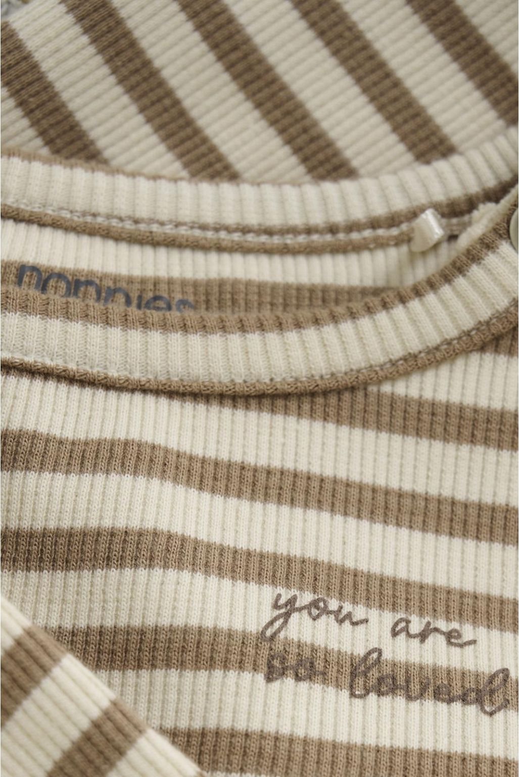 Unisex longsleeve Sequin van Noppies Baby, gemaakt van GOTS-gecertificeerd katoen (CU1392474), uitgevoerd met een all-over streep dessin. De longsleeve is voorzien van een ronde hals met een drukknoop en lange mouwen. Met GOTS-katoen maak je de beste keuze voor jezelf, je kindje en de wereld. Van de milieubewuste manier waarop het katoen wordt geproduceerd tot een verbod op kinderarbeid, alles voldoet aan hoge standaarden. En het is echt heerlijk om te dragen!