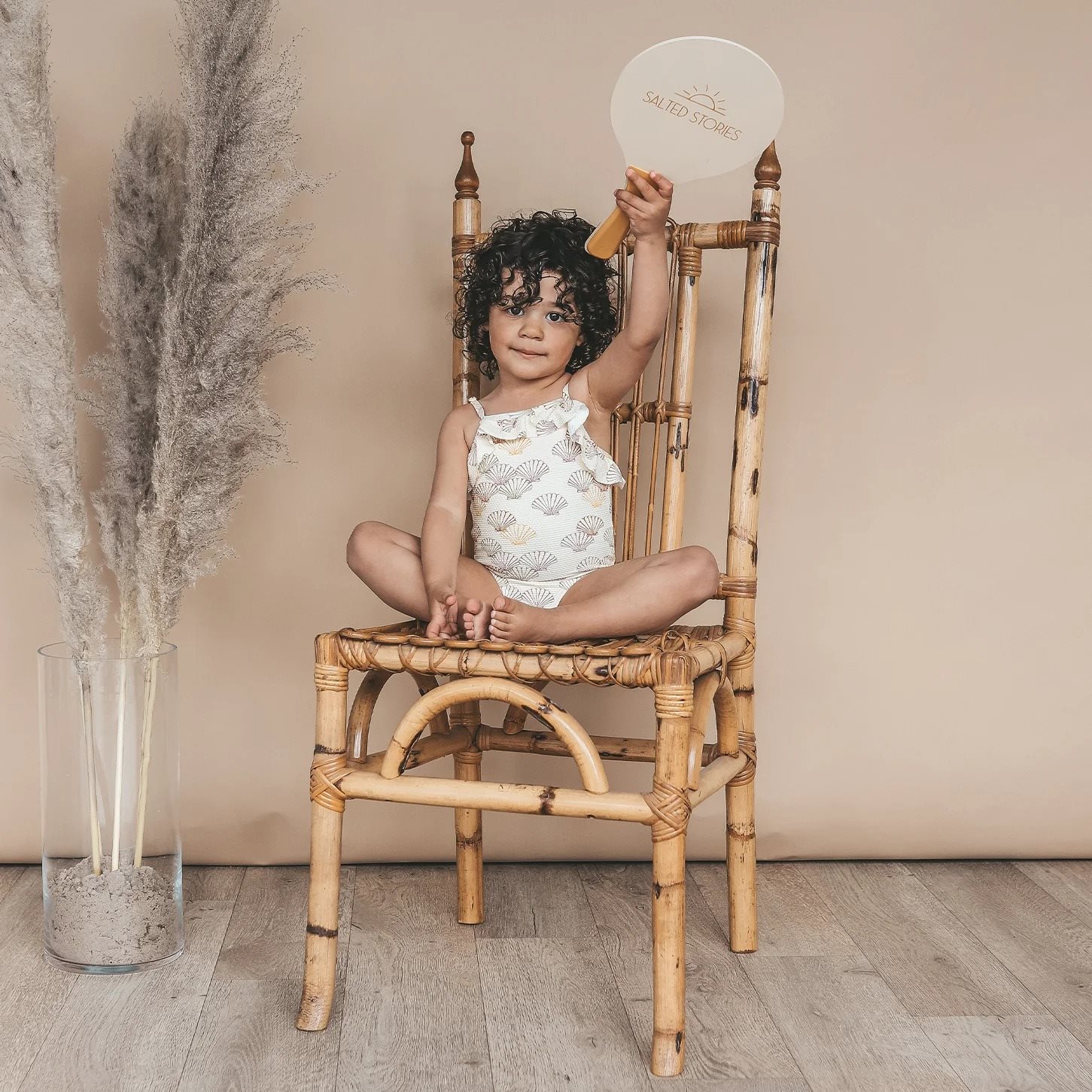 Dit Salted Stories meisjes badpak met all-over schelpenprint straalt pure zomerse elegantie uit. De zachte basis wordt gecombineerd met verfijnde schelpjes in warme pastelkleuren, wat zorgt voor een speelse maar stijlvolle uitstraling binnen de Spring Summer 2026 collectie. Het badpak is gemaakt van een zachte, licht gestructureerde zwemstof die zorgt voor een luxe uitstraling en extra diepte in het ontwerp. De subtiele structuur geeft het badpak een unieke en premium feel. De fijne schouderbandjes en de ruffle langs de bovenzijde zorgen voor een zachte, girly touch. De aangesloten pasvorm biedt comfort en voldoende bewegingsvrijheid tijdens zwemmen en spelen. De binnenzijde is volledig gevoerd met een zachte lining voor extra draagcomfort en een mooie, stevige fit. De elastische zwemstof droogt snel na gebruik en is voorzien van een UV-werende finish, wat extra bescherming biedt tijdens zonnige strand- en zwembadmomenten.