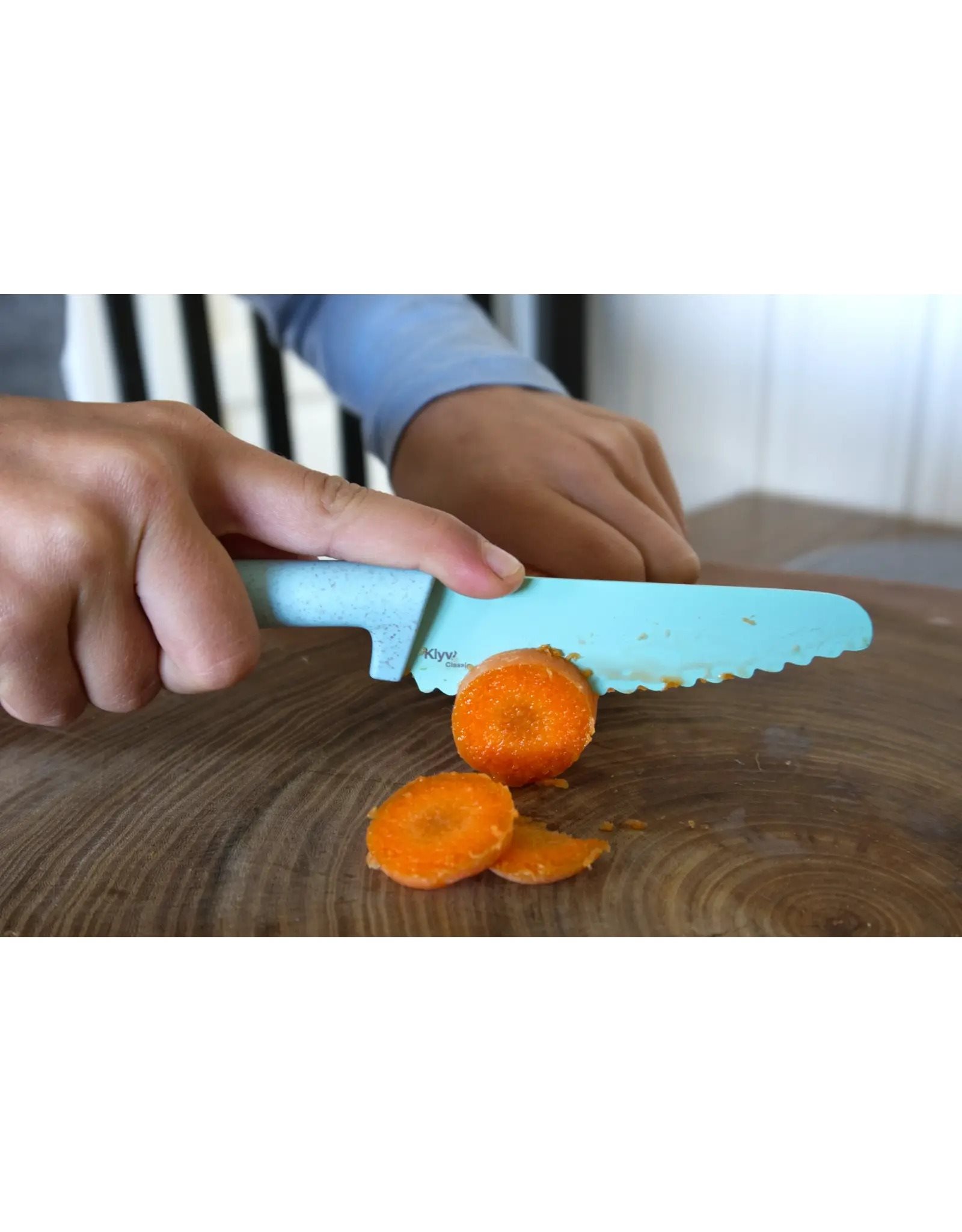 Speciaal ontworpen voor kleine handen biedt KLYV Classic een comfortabele grip en een kindvriendelijke vorm, zodat kinderen veilig kunnen oefenen met snijden met extra stabiliteit en coördinatie. Het ondersteunt de ontwikkeling van je kind door echte kookmomenten: het helpt bij het verbeteren van de fijne motoriek, concentratie en zelfstandigheid, en maakt van dagelijkse maaltijdvoorbereiding een leuk familie-ritueel.