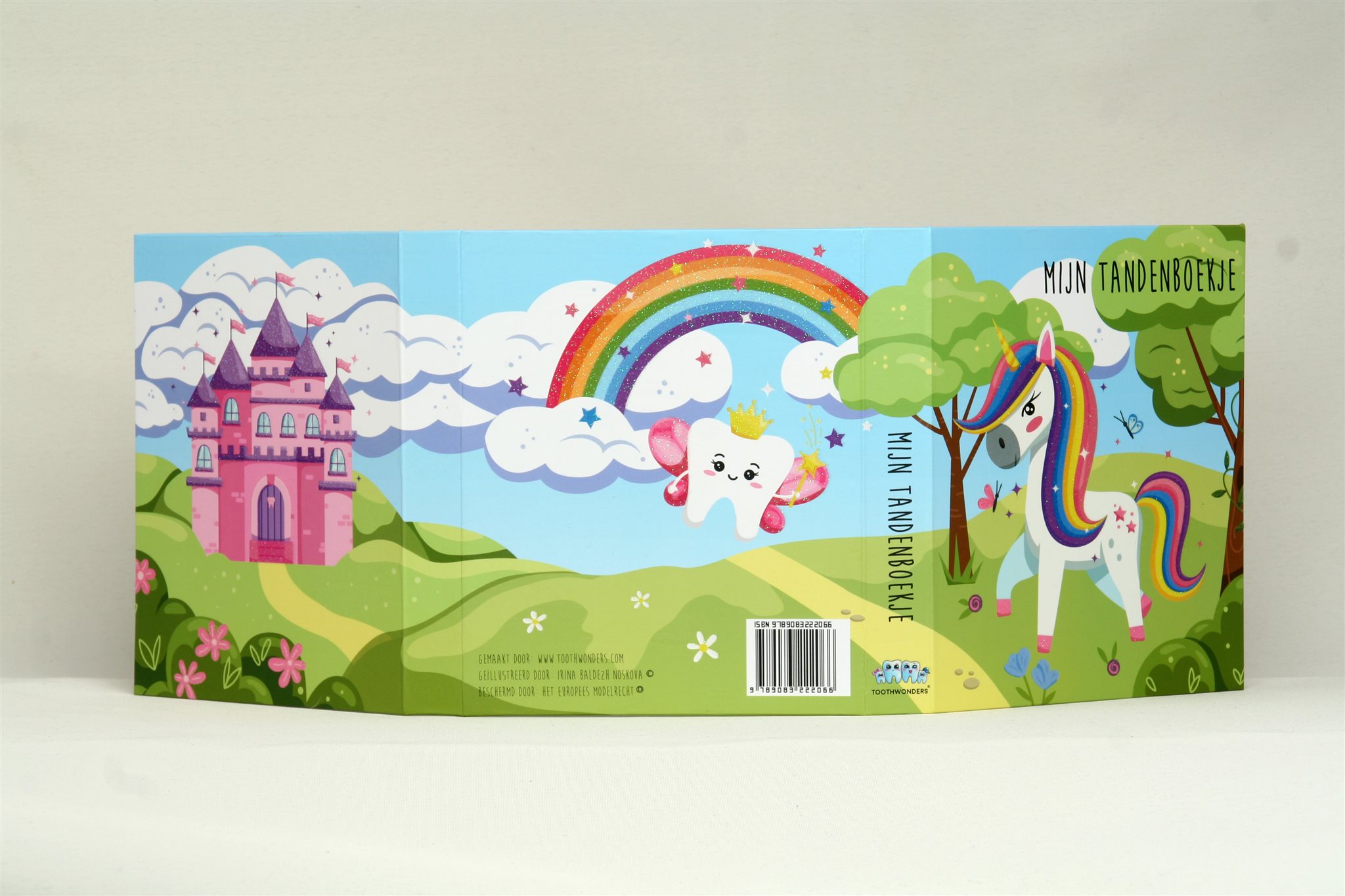 Over de magische regenboog, heen en weer – galoppeert de Eenhoorn voor losse tandjes en meer! Het wisselen van tanden wordt nóg specialer met de nieuwste versie van de Tandenboekjes: de Eenhoorn! Deze vernieuwde versie heeft een prachtig vormgegeven kunststofhouder met ruimte voor elke tand en plaats om de wisseldatum bij te houden. Nieuw is het uitgebreide leesboekje, vol leuke en leerzame weetjes over tanden. En met de toegevoegde munt weet de Tandenfee meteen wanneer er een tand gewisseld is! Ook dit ontwerp is van dezelfde getalenteerde ontwerpster van de versie Tandenmuis. Een magische herinnering èn de perfecte gids voor een stralende glimlach!