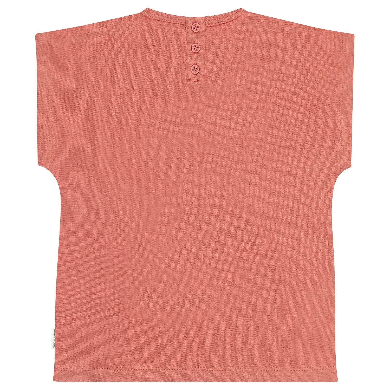 Dit comfortabele T-shirt voor meisjes is perfect voor zomerse dagen. Het shirt heeft een roze/oranje tint en is gemaakt van 100% biologisch katoen in een fijne wafelstof. De rechte pasvorm en korte mouwen zorgen voor een casual uitstraling. Het ontwerp wordt versterkt door een kleurrijke print van een schelp met de tekst “J’ADORE LA MER”, uitgevoerd in oranje- en lila tinten. Dit veelzijdige shirt is beschikbaar in verschillende maten en biedt een zachte, ademende stof die ideaal is voor actieve kinderen. Combineer het met een luchtige broek of shorts voor een vrolijke, zomerse outfit. Het model is 125 centimeter lang en draagt maat 128.