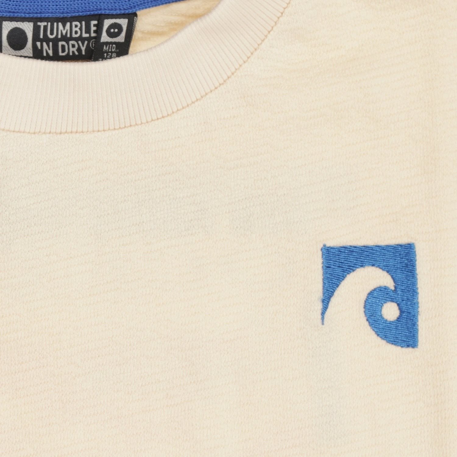 Dit frisse T-shirt is perfect voor actieve jongens die houden van stijl en comfort. Het shirt heeft een off white kleur en is gemaakt van 100% biologisch katoen in een zachte slub-jersey stof. De voorzijde is subtiel voorzien van een geborduurde tekst en een kleine illustratie, terwijl de achterzijde een opvallende grafische print toont in contrasterende kleuren. Het model is 125 centimeter lang en draagt maat 128.