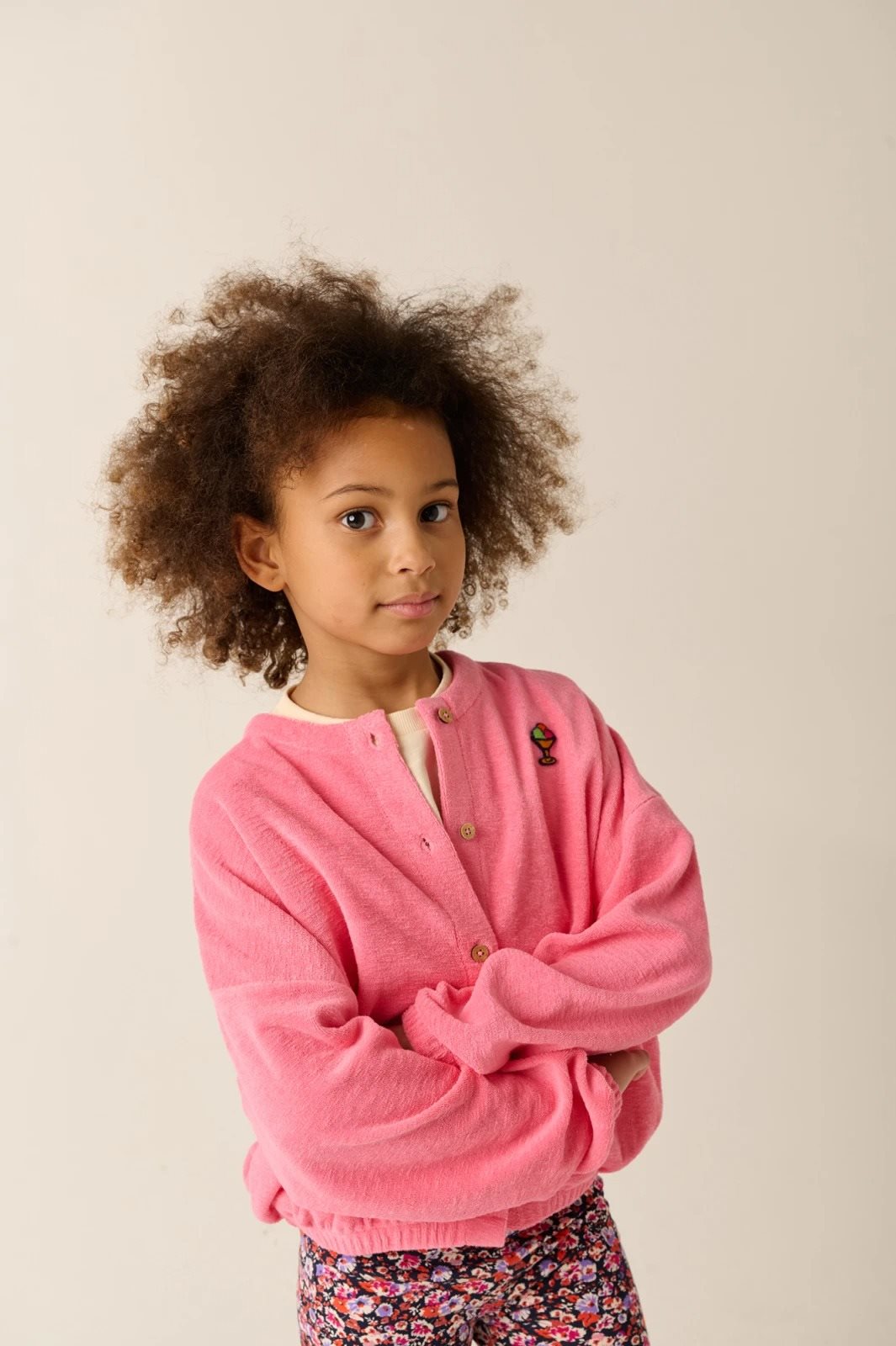 Dit schattige vestje, in een roze tint, is een perfecte keuze voor meisjes die houden van stijl en comfort. Het vest is superzacht, gemaakt van biologisch katoen in een badstof kwaliteit. De regular fit, handige knoopsluiting en de fijne ribboorden maken dit vest comfortabel en geschikt voor dagelijks gebruik. Verkrijgbaar in enkele en dubbele maten van 104-146/152 en perfect te combineren met een jeans of rok voor een casual maar trendy look. Het model is 128 centimeter lang en draagt maat 128.
