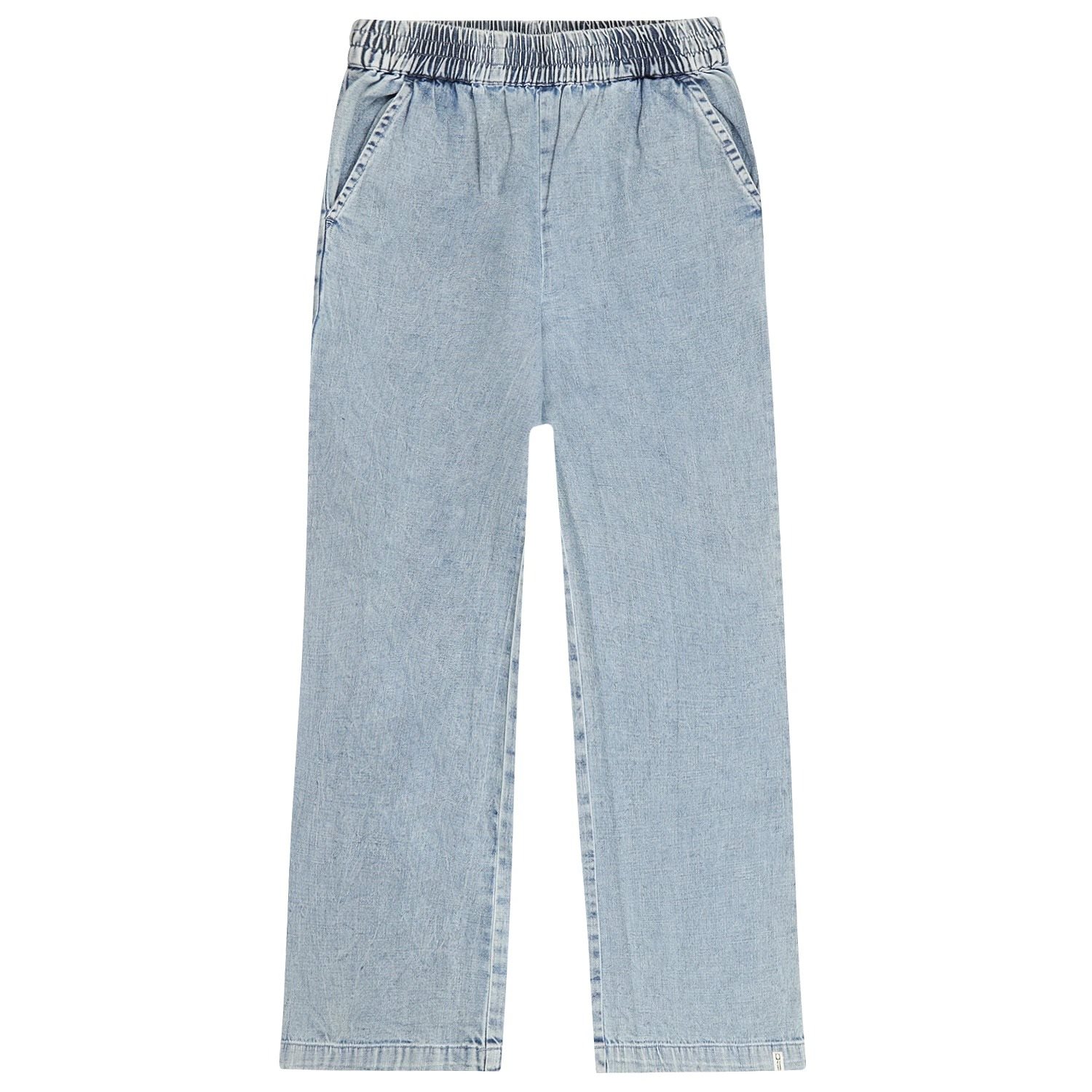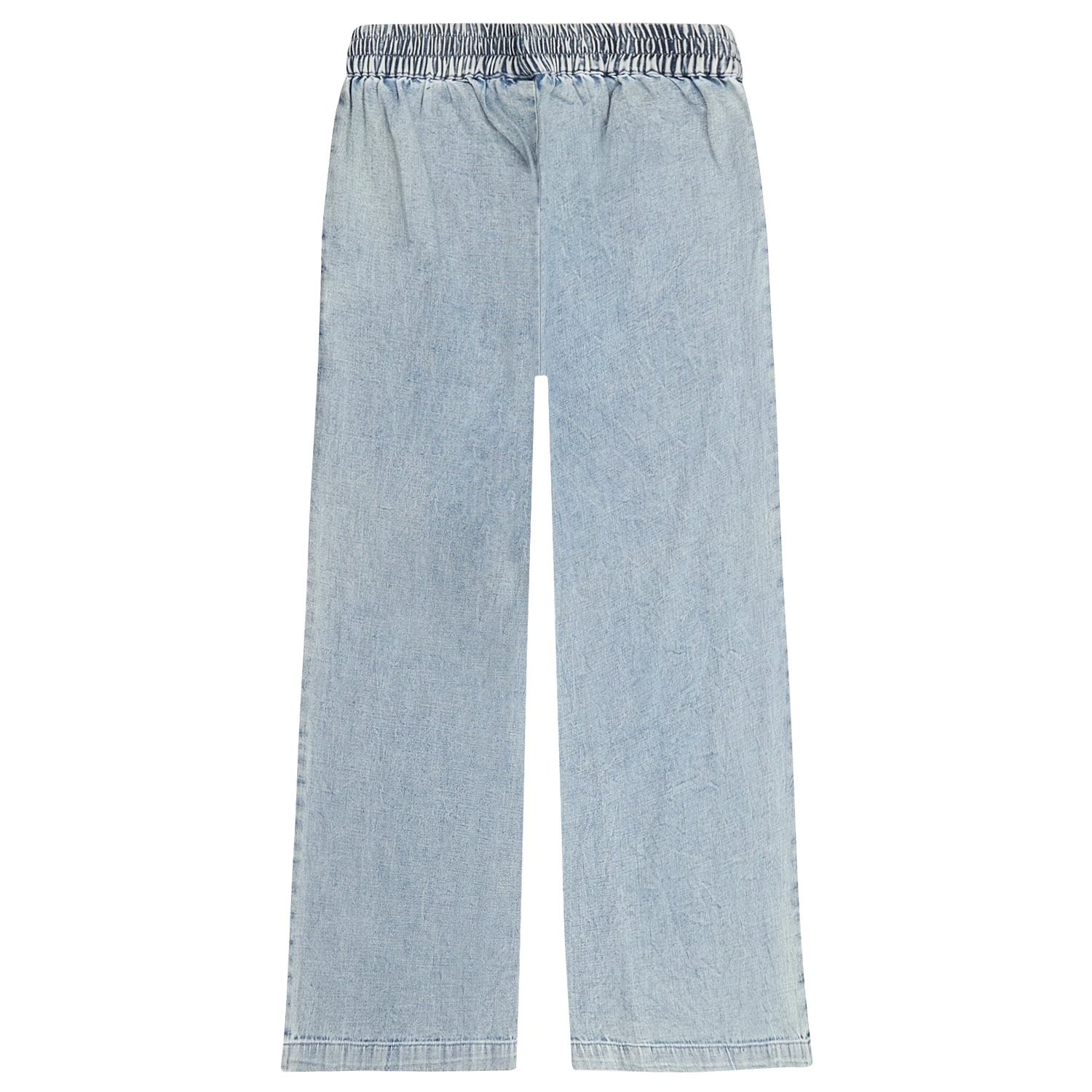 Deze wide-leg denimlook broek heeft een elastieken tailleband en twee handige steekzakken op de voorkant, wat zorgt voor ultiem draagcomfort. Door de speciale wassing is elk stuk uniek. Het model is 125 centimeter lang en draagt maat 128.